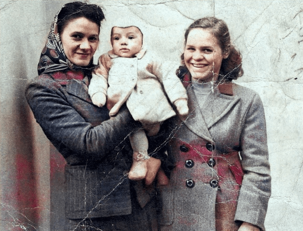 She remembered her grandfather giving them toffees when they left his house and once being dressed in a blue bonnet and coat with matching leggings and shoes — a rare and cherished treat. She also remembered a cousin named David who was killed on the front line during the Second World War, a loss that left its mark on the family.