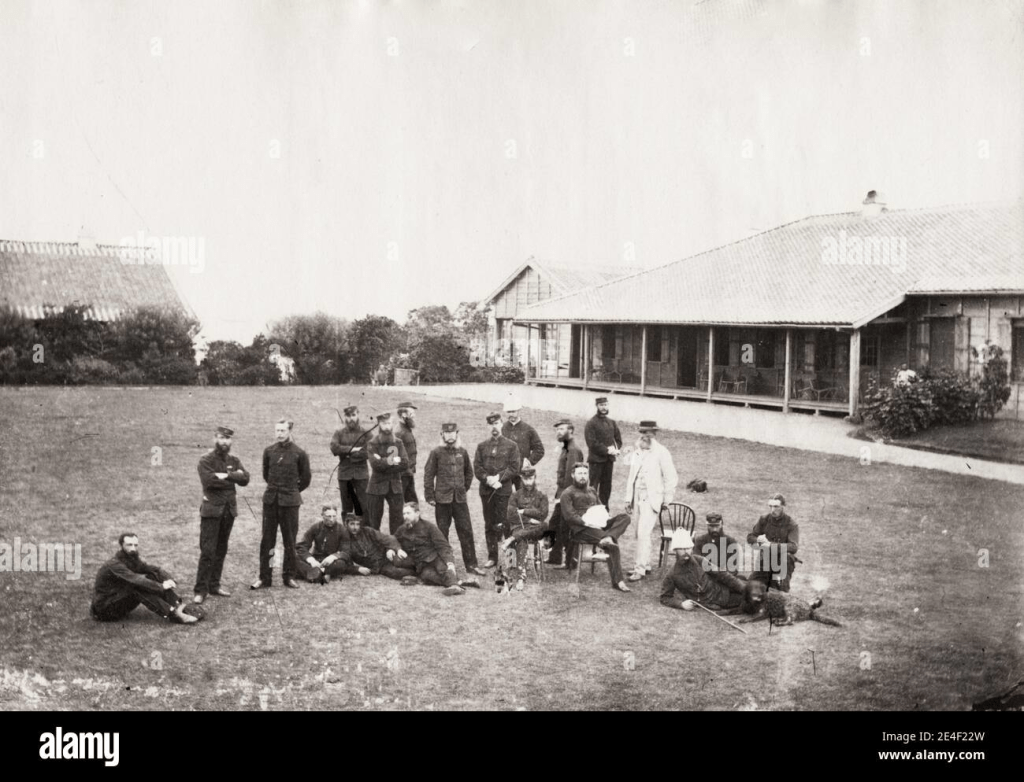 In October 1865, Frederick’s detachment rejoined the main body of the regiment and marched to Grahamstown, arriving on 19 October. Grahamstown, located in Cape Colony about 600 miles from Cape Town and 96 miles inland from Port Elizabeth, resembled “a nice little country English town”. The settlement featured substantial shops, business houses, and a large open market place where weekly auctions were held for wool, ivory, ostrich feathers, and colonial produce. The presence of Sir Walter Currie’s estate, well-stocked with ostriches and zebras and open to garrison troops, provided welcome recreation opportunities.