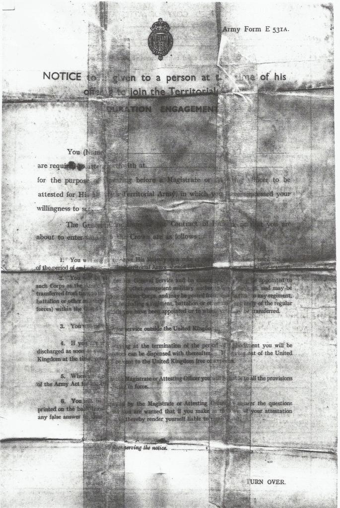 When Britain declared war on Germany on 3 September 1939, John Howey—now a 41-year-old father of five, with a sixth child yet to come—once again answered his country’s call to arms. On 11 September 1939, just eight days after the declaration of war, John enlisted at Liverpool in the 324 Company, Pioneer Corps. His service number was 4605448.