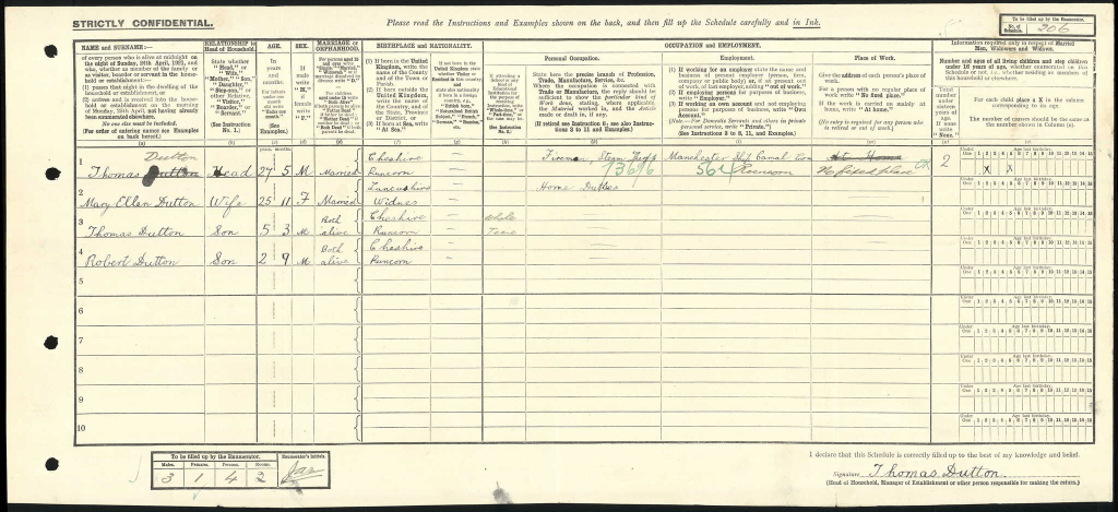 By the time of the 1921 census, Thomas was five years old and living with his mother and younger brother, Robert, who was just two. His father, Thomas, listed in that record as a Fireman working on the Manchester Ship Canal.